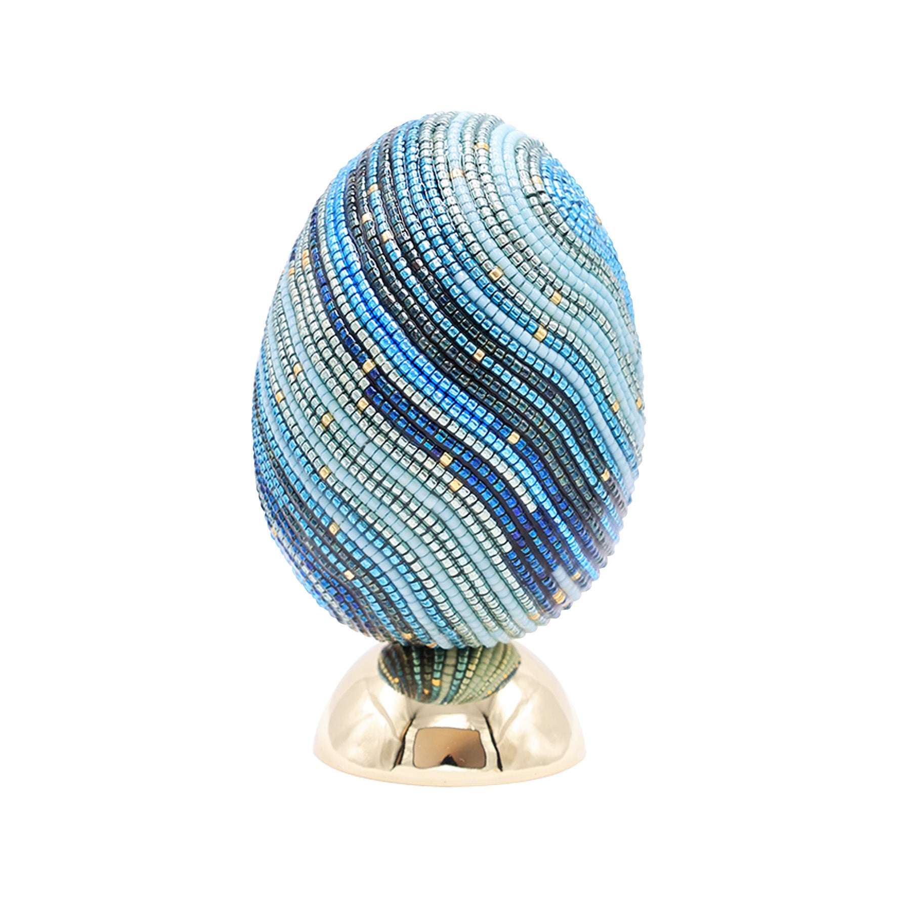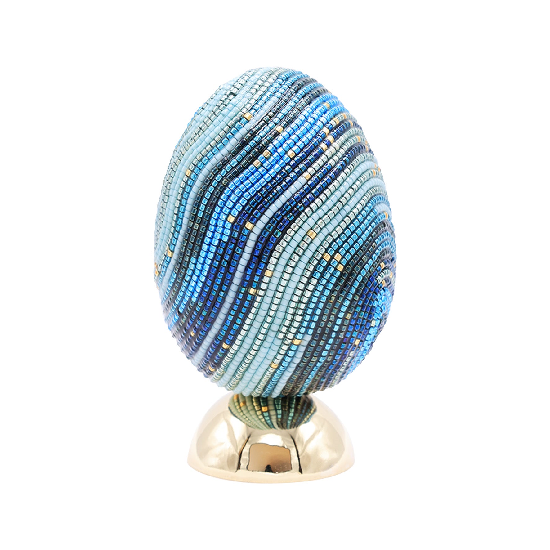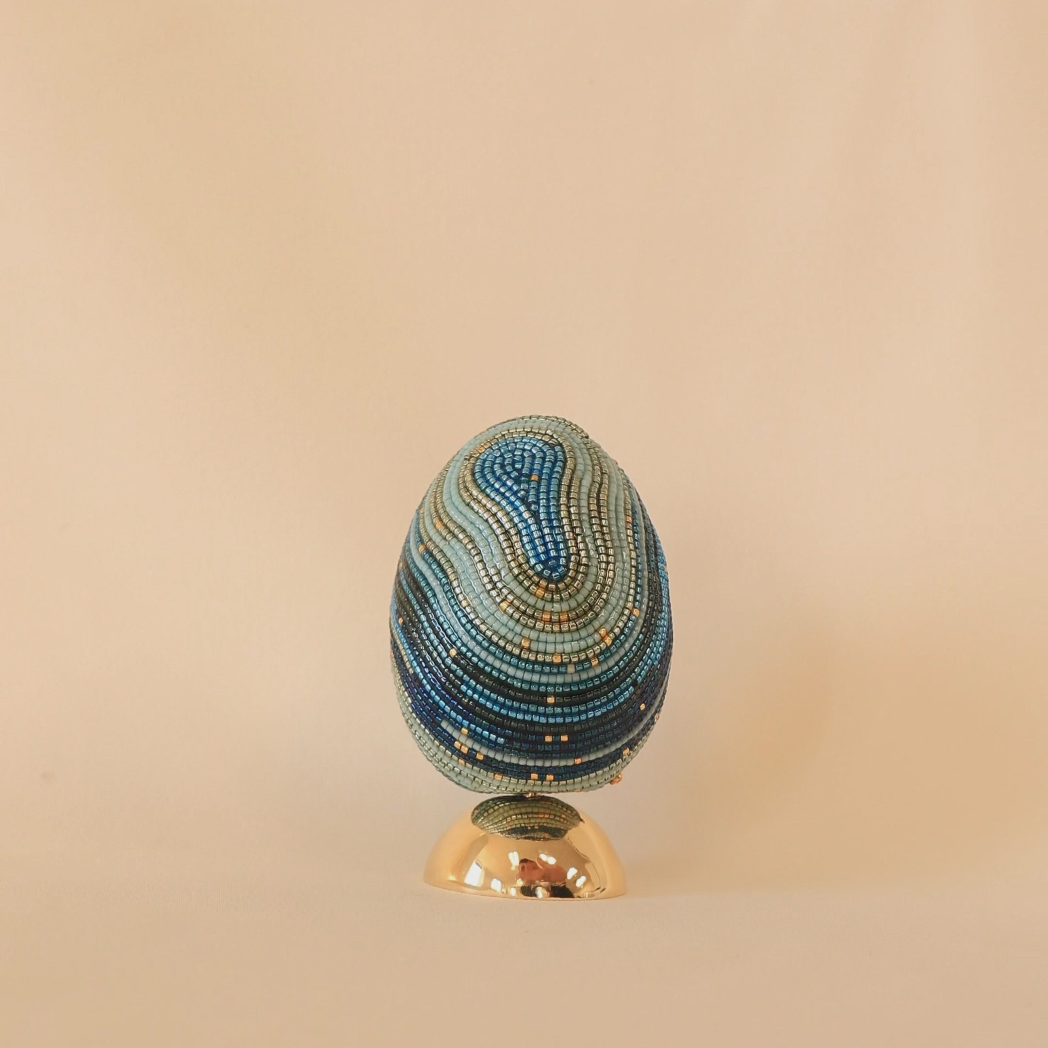 Each layer, hand-beaded in SVJ’s palette, suggests movement, as if something were quietly taking shape within.
